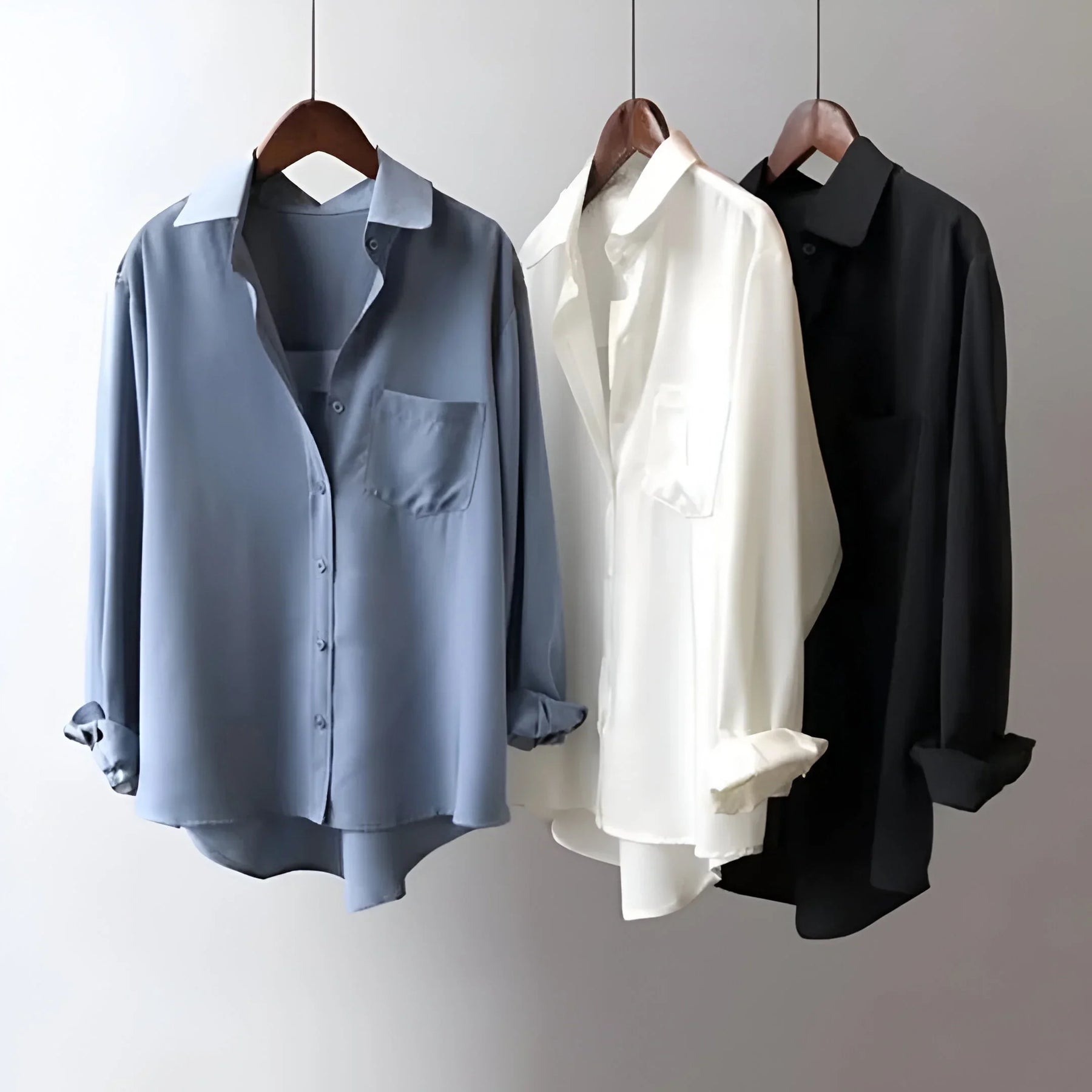 Entdecken Sie unseren seidigen Damen Businesshemd, der Ihre professionelle Garderobe auf ein neues Level hebt. Der hochwertige Seidenstoff umschmeichelt Ihre Silhouette perfekt und sorgt für ein angenehmes Tragegefühl während des gesamten Arbeitstages. Die zeitlose Schnittführung kombiniert mit modernen Details macht dieses Hemd zu einem unverzichtbaren Begleiter für Ihr Business-Outfit.